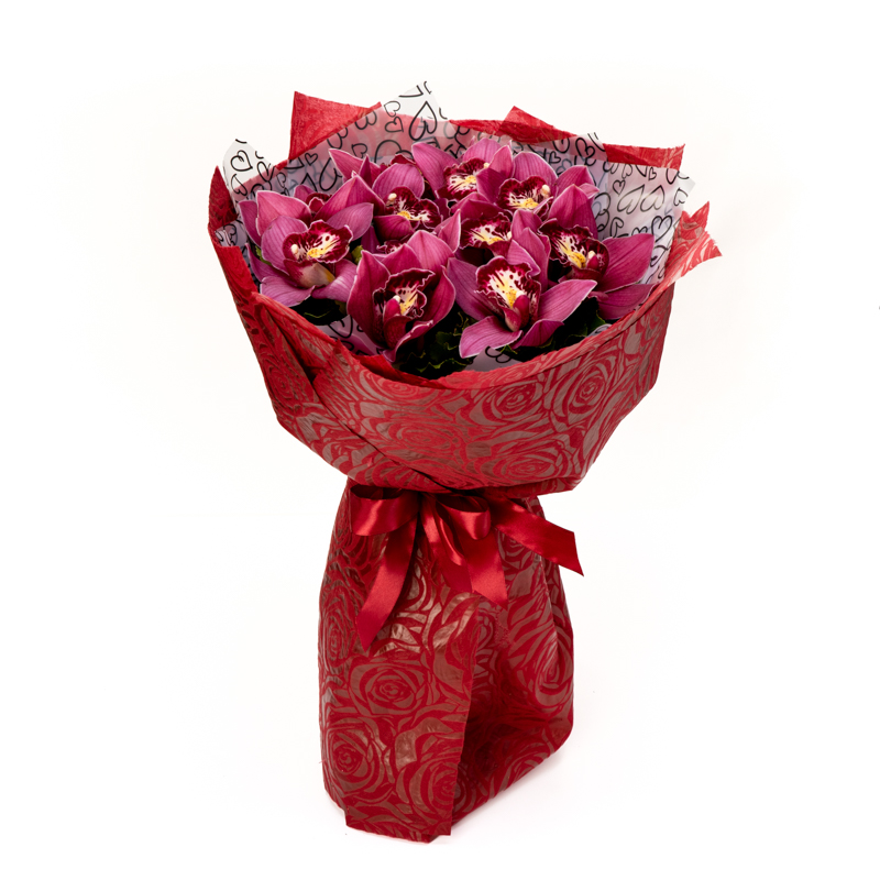 Ανθοδέσμη με 11 άνθη ορχιδέας cymbidium, και εντυπωσιακό αμπαλάζ.